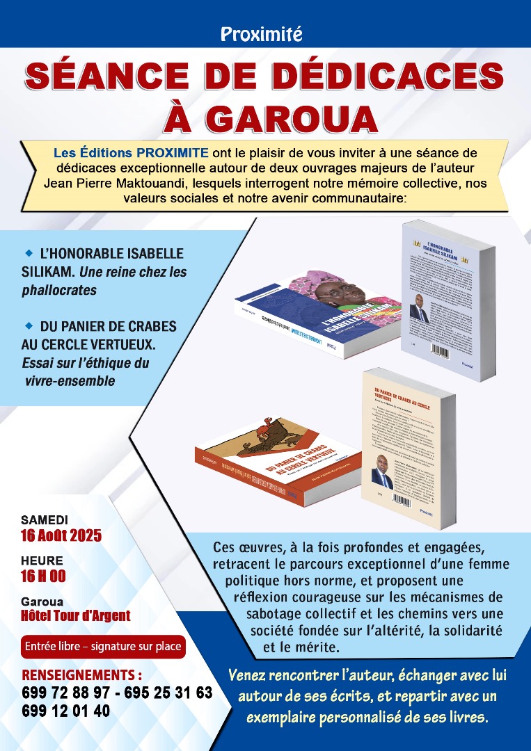 Partager la publication "Cameroun : Jean Pierre Maktouandi en dédicace le 16 août à Garoua "