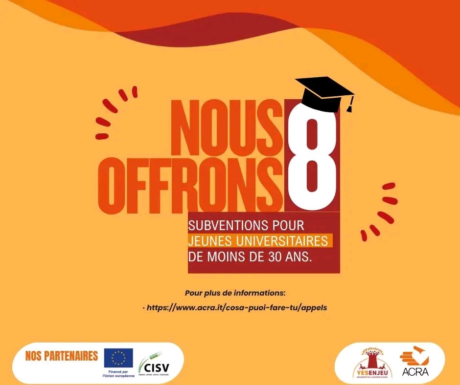 Dans le cadre du projet YES-ENJEU, financé par l’Union européenne, l’organisation ACRA lance un appel à candidatures pour des bourses de recherche destinées à des étudiants tchadiens inscrits en Master 2. Une opportunité unique pour contribuer à la compréhension des défis sociaux et environnementaux du pays.